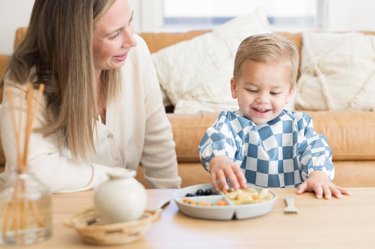 Tiny Twinkle Mess Proof Baby Bib,Waterproof Smock Baby Bib for Eating,Machine Washable Long Sleeve Bib,Baby Led Weaning,Toddler Bib,BLW Supplies(Checkers Sage, Small 6-24 Months)