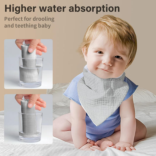 Muslin Baby Bibs,Soft Triangular Baby Bandana Drool Bibs for Baby Boy Girl,Solid Colors Bib for Drooling Teething