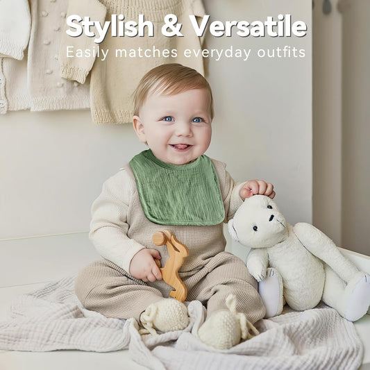 Muslin Baby Bibs for Unisex Boys Girls, Cotton Drool Bibs, Adjustable Newborn Bibs for Drooling and Teething