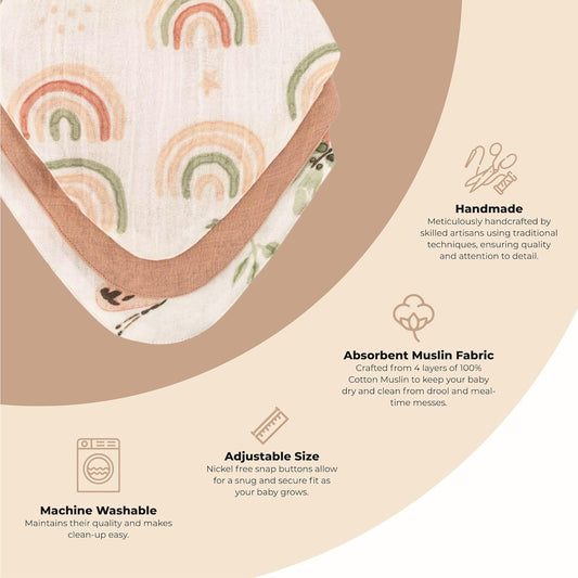 Crane 100% Cotton Baby Bib Set - Butterfly & Rainbow Muslin Bibs - Set of 3 Drool Bibs for Baby Boys or Girls - Newborn Eating Essentials