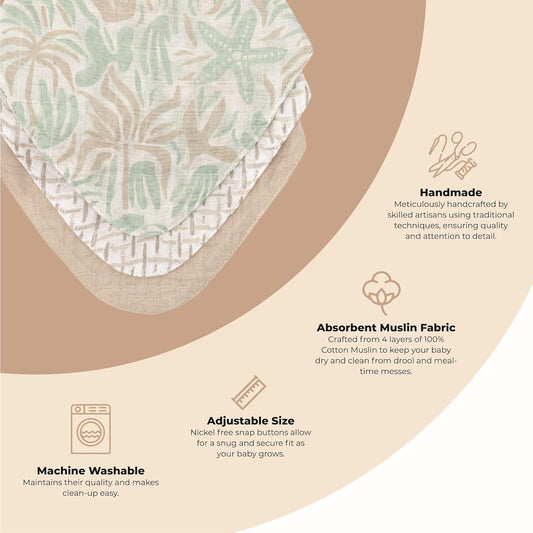 Crane 100% Cotton Newborn Baby Bib Set - 3 Bandana Style Muslin Drool Bibs for Eating Essentials - Set for Baby Boy or Girl