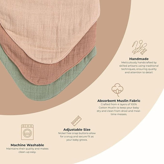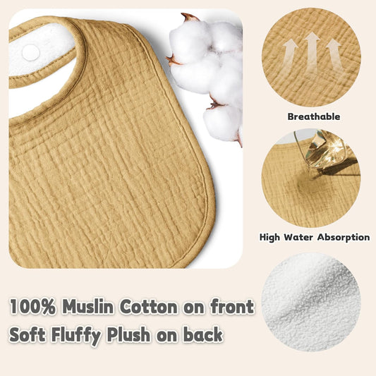6-Pack Muslin Baby Bibs for Unisex Boys Girls, Cotton Baby Drool Bibs, Drooling and Teething Bibs for Infant