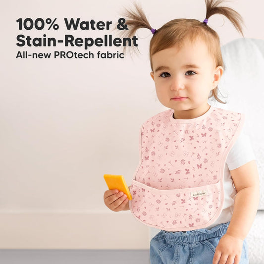 3-Pack Waterproof Baby Bibs for Eating - Lightweight Toddler Feeding Bibs with Large Food Catcher, Mess Proof, Food-Grade Baby Eating Essentials, Easy to Put On & Clean (Bloom)