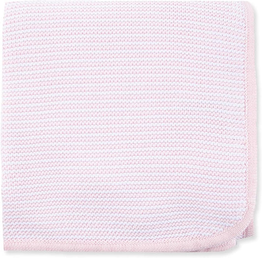 Little Me Knit Baby Blanket – 100% Soft Cotton, Snuggly and Breathable, Perfect as a Swaddle, Stroller Blanket or Nursery Decor for Boys and Girls, Pink Stripe, 30 x 40 Inches
