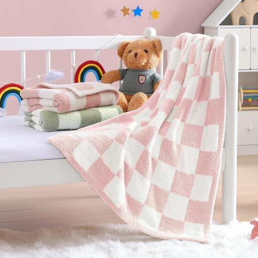 WRENSONGE Checkered Throw Blanket, Pink Microfiber Soft Cozy Fluffy Warm Hand Made Throw Blankets for Couch, Sofa, Chair, Bed, Camping, Picnic, Travel Lightweight Bed Blanket - 30"*40"