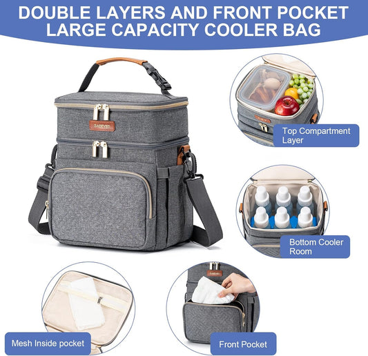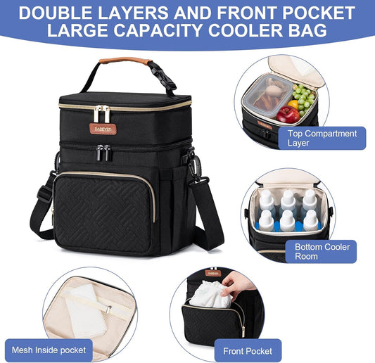Insulated Breastmilk Cooler Bag with Ice Pack - Holds 6x9oz Bottles, Leakproof Double Layer, Baby Bottle Cooler Bag with Adjustable Strap for Nursing Moms, Daycare & Travel