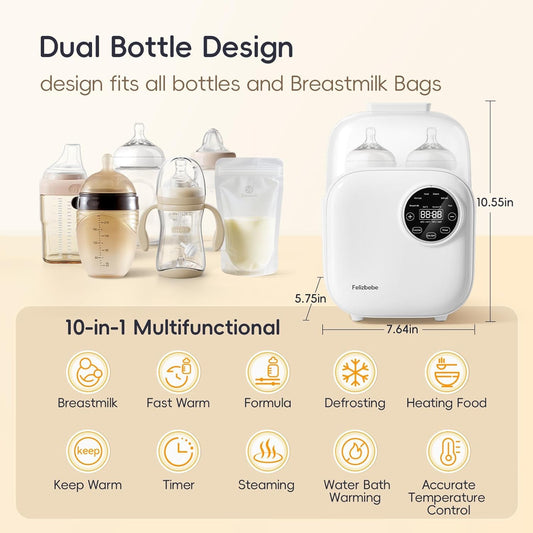 Baby Bottle Warmer, Felizbebe 10-in-1 Bottle Warmers for All Bottles, Detachable Body for Easy Cleaning, Accurate Temperature Control, Timer, Sterili-zing,Milk Warmer for Breastmilk or Formula