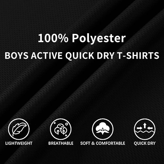 6-Pack Boys Athletic T-Shirts Quick Dry Short-Sleeve Tops Youth Moisture Wicking Running Sports T-Shirts(4-18 Years)