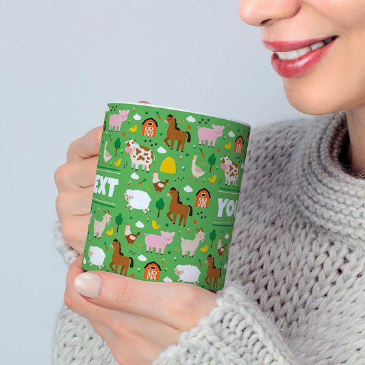 Personalized Mug for Kids - Farm Animals - Custom Name/Text, Ceramic Hot Chocolate/Cocoa/Coffee Cup for Boys/Girls, Birthday/Christmas/Holiday Gift - 15 oz, Light Blue Handle