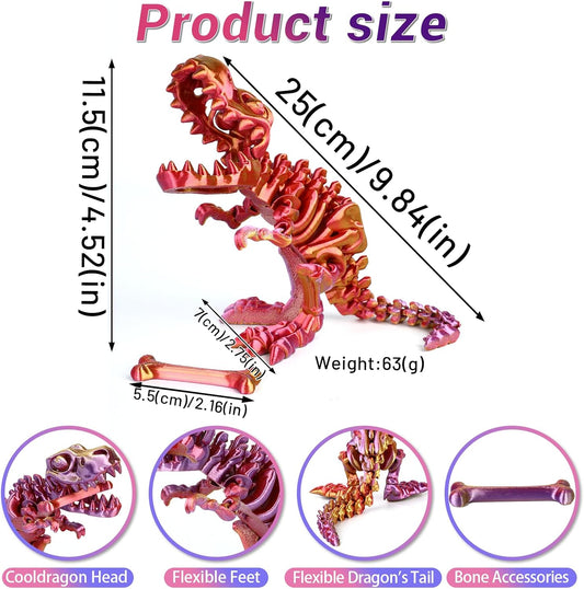 3D Printed Dinosaur Bones Tyrannosaurus Rex Skeleton with Movable Joints, 3D Model Skull T-Rex, Flexible Articulated Dinosaur Fidget Toys Adults for Autism/ADHD