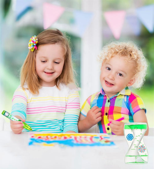 Liquid Motion Bubbler Pens Duple Wheel Colorful Timer Fidget Pens for Kids Sensory Toys Liquid Motion Bubbler Pen for Stress Relief and Anxiety Desk Toys Bubbler Timer Gifts for Kids 2 Pack Geen