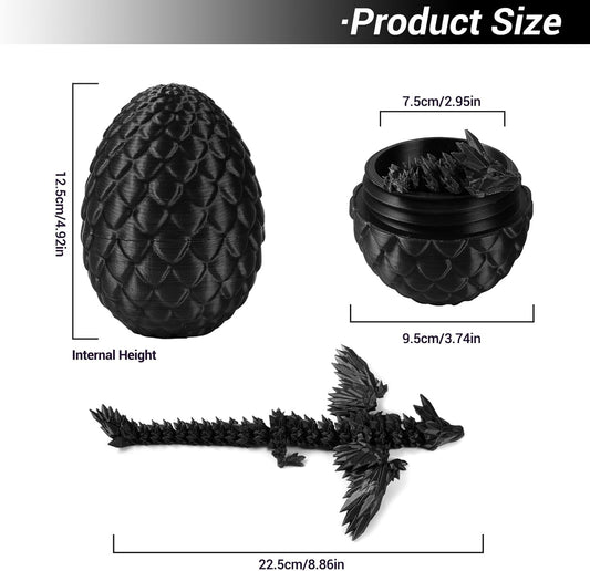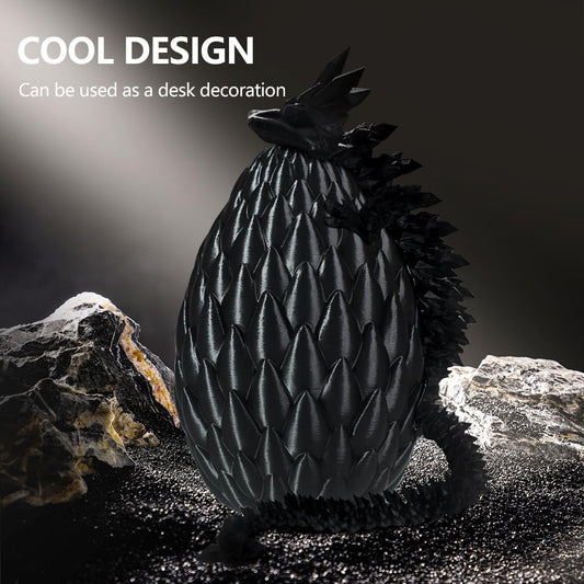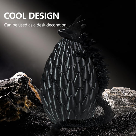 Dragon Eggs with Dragon Inside, 16.5 Inch Large 3D Printed Dragon Egg Articulated Dragon Crystal Dragon Executive Desk Toys Fidget Toy for Autism/ADHD (Black, only dragon)