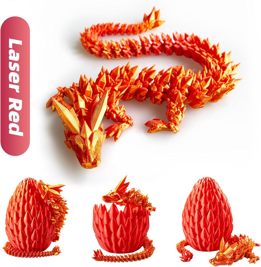 Dragon Egg,15in Crystal Dragon,Surprise Egg,Articulated Dragon,3D Printed Gift Toy,Fidget Toys for Autism/ADHD, Executive Desk Toys,Home Office Decor (Laser Red)