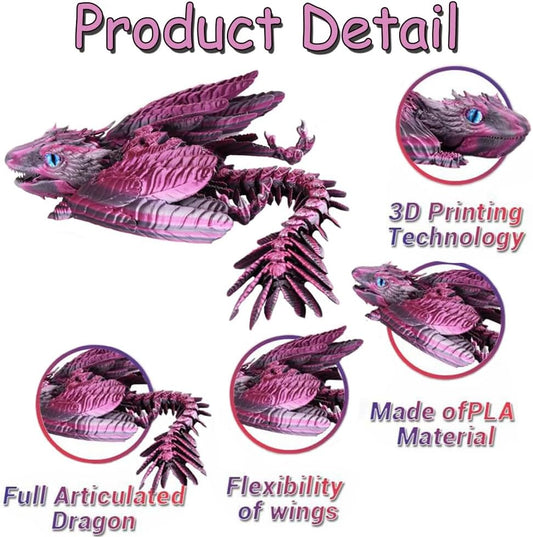 Feathered Wyvern Dragon, 3D Printed Dragon with Wings Animals Toys, Articulated Dragon Fidget Toys Desktop Pet Desk Birthday Party Gift for Kids and Adults (Purple)