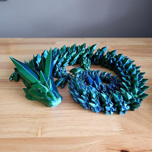 Crystal Dragon - Articulated Flexi Dragon - 3D Printed Gift (Adult, Blue/Green)