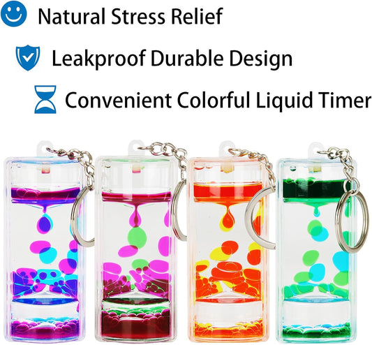 Liquid Motion Bubbler Key Chain Pack of 4 Great Desktop Colorful Hourglass Liquid Bubbler Small Calming Relaxing Toys