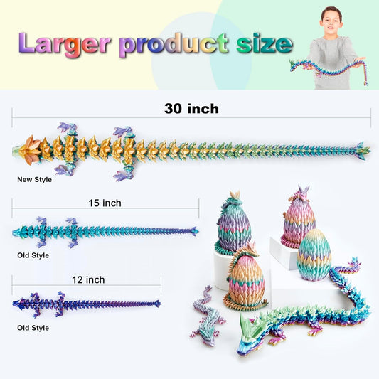 3D Printed Dragon with Dragon Egg 16.5'' Articulated Dragon Crystal Dragon Fidget Dragon Egg Toys Executive Desk Toys (Red Gold Purple, Dragon Only)