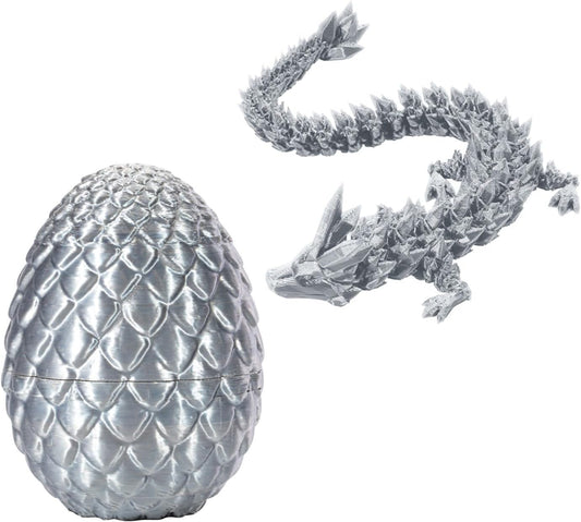 Executive Desk Toys Easter Egg, 3D Printed Dragon, 3D Dragon Eggs with Dragon Inside, Dragon Toy Dragon Egg Fidget Toy, Fidget Toys for Autism/ADHD (Silk Silver)