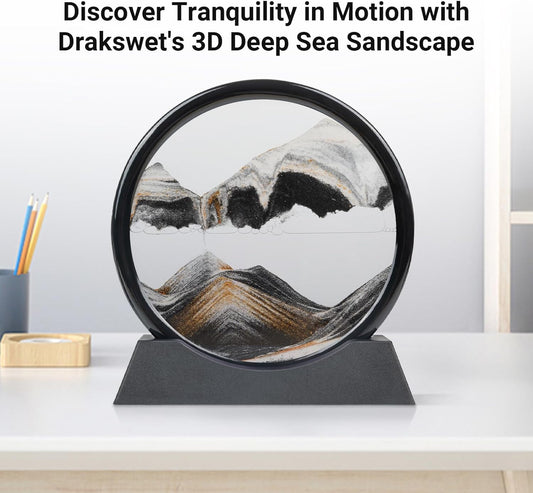 Drakswet Moving Sand Art Liquid Motion,Moving Sand Art Picture-3D Deep Sea Sandscape,Round Glass Frame Display Flowing Sand Relaxing Desktop Home Office Work Decor (Black)