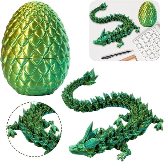 Upgraded 3D Printed Flying Dragon in Egg - Surprise Egg with Flexible Winged Dragon Inside, Mystery Beautiful Fidget Toy, Birthday Gift, Desk Figure Decor (Transparent Green)