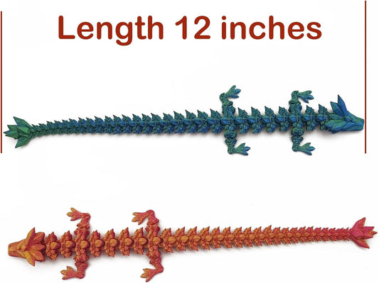 2PCS 12 Inch 3D Printed Dragon, Mystery Crystal Dragon, 3D Printed Articulated Dragon, Home Office Executive Desktop Decoration Toys, Autism/ADHD