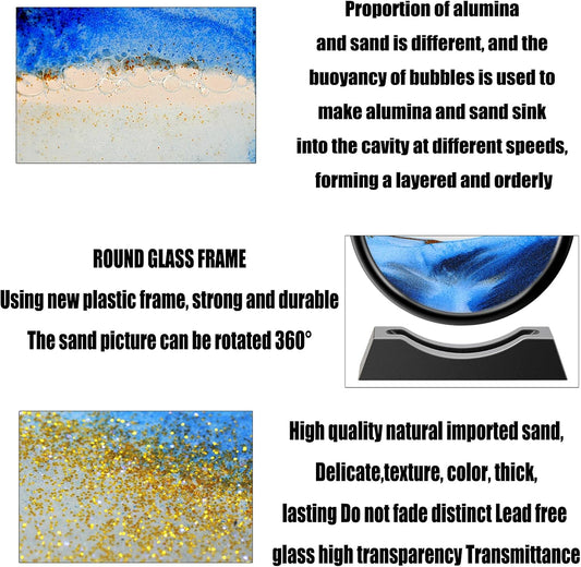 Liquid Motion Sandscape Round Moving Sand Art Sensory Toy Anxiety Fidget ADHD Relaxation Toy Home Office Desktop Decoration (Blue, 7-in)