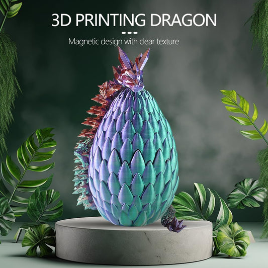 3D Printed Dragon Egg, Flying Articulated Dragon in Eggs, Flexible Joints Home Decor Executive Desk Figurine (Green Mix Blue)
