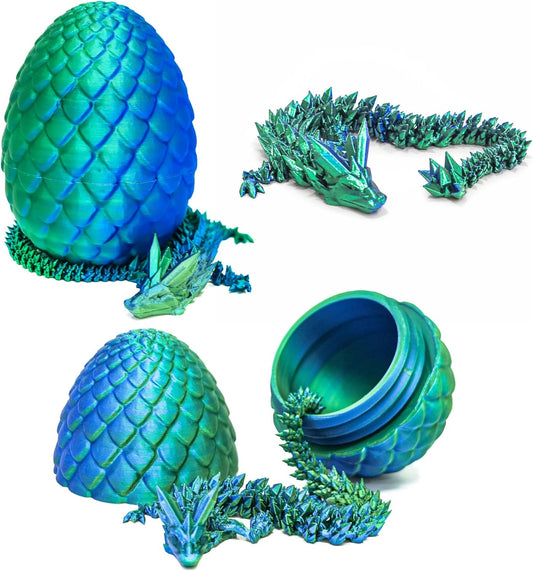 Dragon Egg - 3D Dragon Egg with Flexible Pearly Sheen Dragon Inside, 3D Printed Surprise Gift, Articulated Dragon Egg Fidget Toy, Dragon Figurine Decor (12” Dragon,Green Mix Blue)
