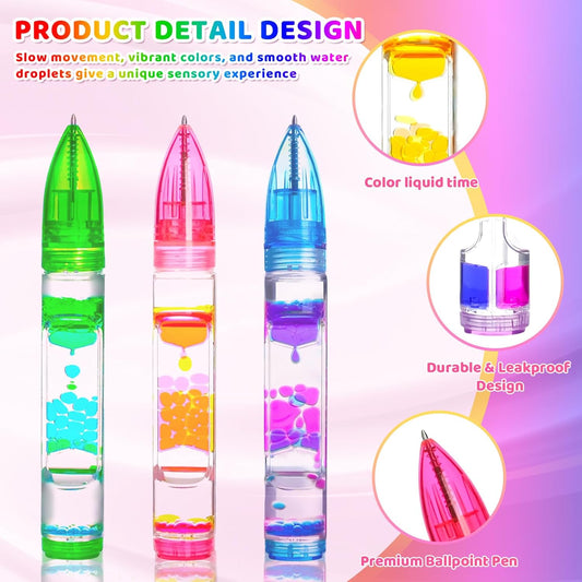3PCS Liquid Pens Easter Basket Stuffers for Kids, Liquid Motion Bubble Fun Cool Pens Autism ADHD Anxiety Stress Relief Tools Quiet Fidget Sensory Autistic Toys Desk Toys Gift for Boys Girls