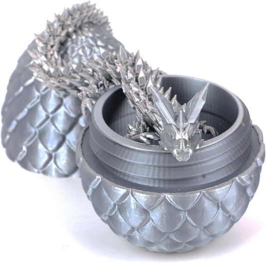 12inch Dragon Egg, Year of The Dragon, 3D Printed Dragon, Executive Desk Toys, Articulated Dragon, Fidget Toys Gifts for Graduates Students Teachers Adults (Silver)