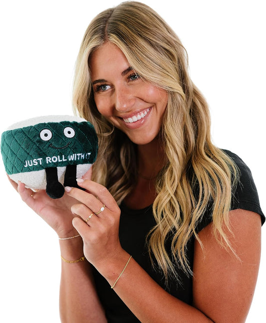 Sushi Foodie Plushie, Funny Pun Meme Gag Gift, White Elephant, Stocking Stuffer Present, Great for Emotional Support, Fun Desk Accessory, Weighted Base for Display