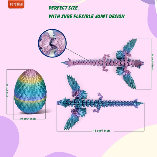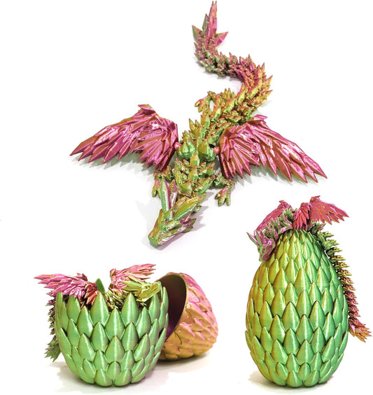 3D Printed Flying Dragon in Egg - 3 Colors Surprise Egg with Flexible Winged Dragon Inside, Mystery Beautiful Fidget Toy, Birthday Gift, Desk Figure Decor (Green Pink Gold)