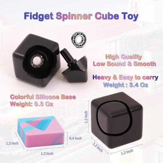 Desk Fidget Toys Spinner-Cube: Figetsss Cool Gadgets Metal Kinetic EDC-Toy with Silicone Base, ADHD Tools Cool Stuff Thing Office Toy Game Stress Relief Gift for Kid Children Teen Adult Christmas