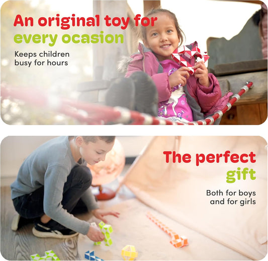 CUBIDI® Magic Snake Cube | Fidget Snake Toy for Kids | Travel Toys for Kids Ages 4-8 | Great Gift for Boys and Girls Birthday, Christmas, Stocking Stuffers - 36 Blocks | 0.9 inch x 0.7 inch | Orange