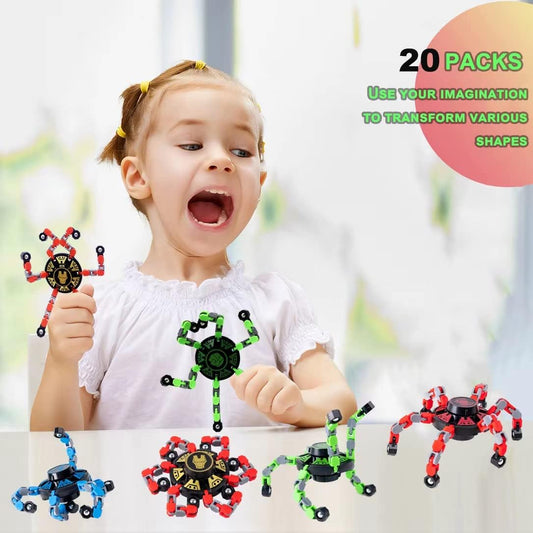 18 Pcs Finger Spinners Sensory Toys, Creative Transformable Chain Robot Toy Fidget Finger Spinners DIY Stress Relief Toy with Transformable Chain for Boys Girls