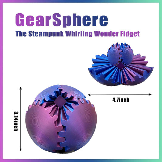Gear Ball - 3D Printed Gear Ball Spin Ball or Cube Fidget Toy,GearSphere Fidget Toys,The Steampunk Whirling Wonder Fidget Ball Toy,Ideal for Stress and Anxiety Relaxin Desk Toy