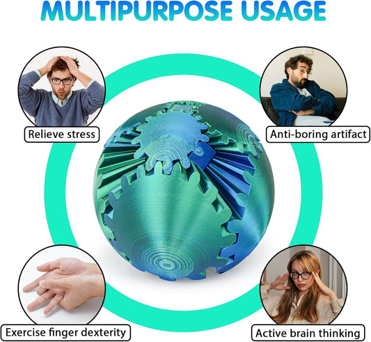 Gear Ball, 3D Printed Gear Ball, Spin ADHD Gear Ball, 3D Printed Gear Ball Rotating Ball Gear Fidget Toy for Relieving Stress and Anxiety, Suitable for Adults and Children Over 6 Years Old.