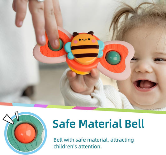 3PCS Spinner Toys for Babies, Baby Bath Toys Travel Essential Airplane Kids Toddlers Toys 1-3 Spinner with Suction Cups, Easter Birthday Baby Gifts Sensory Toys