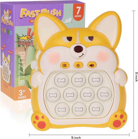 Fast Push Game Pop Fidget Toys for Kids, Fast Push Bubble Game, Quick Push Pop Game for Boys & Girls Age 3-12, Handheld Puzzle Game Sensory Toys Relaxation and Decompression (Yellow Corgi)
