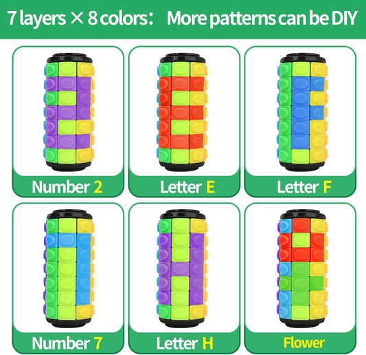 Rotate and Slide Puzzle, Finger Spinner Puzzle, Fidget Toys, Decompression Toy, 8 Colors,7 Layers, Educational Sensory Toy for Kids Adults (8 Colors X (6 Layers + 4 Layers + 8 Layers))