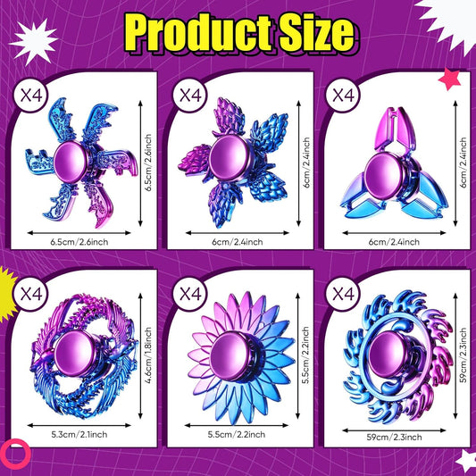 Woanger 24 Pcs Cool Spinners Metal Looking Spinner Toy Finger Spinners Toy Pack Stress Relief Hand Spinner for Adults Teens Anxiety Party Favor Stocking Stuffers Gift(Golden Purple)
