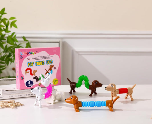 Robot dog,Dog pop tubes,Toy Dog,Animal pop Tubes,Fidget Toys for Kids,Sensory Toys for Kids 5-7,Dog Party Favors,autism sensory products,sensory toys for kids with autism,toys for ages 5-7(4 Pack Dog)