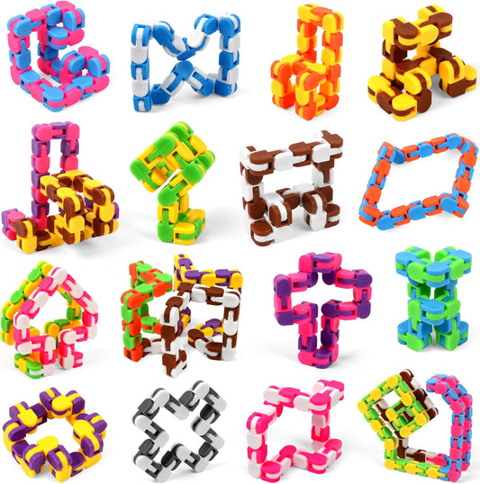 68 Pack 24 Links Wacky Tracks Snap and Click Fidget Toys,Fidget Snake Toy for Party Favors,Plastic Chains Finger Sensory Toys,Stress Relief Toys for Kids
