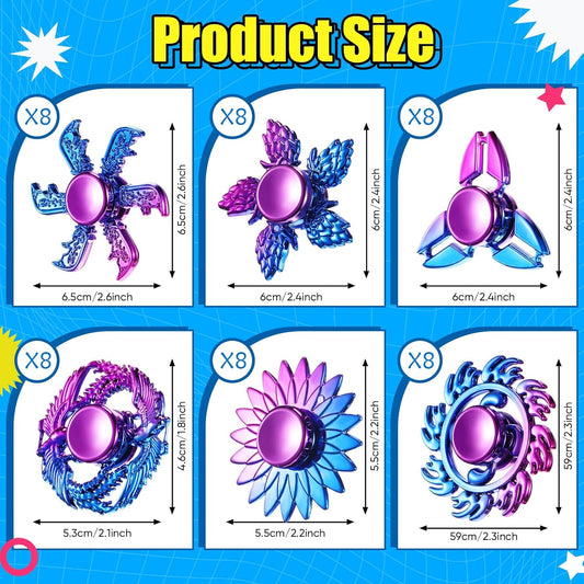 Woanger 48 Pcs Fidget Spinner High Speed Hand Spinners for Anxiety ADHD Adults Boys Girls, Anxiety Stress Relief Toys for Focus Party Favor Classroom Prizes(Gradient Color,Cool Style)