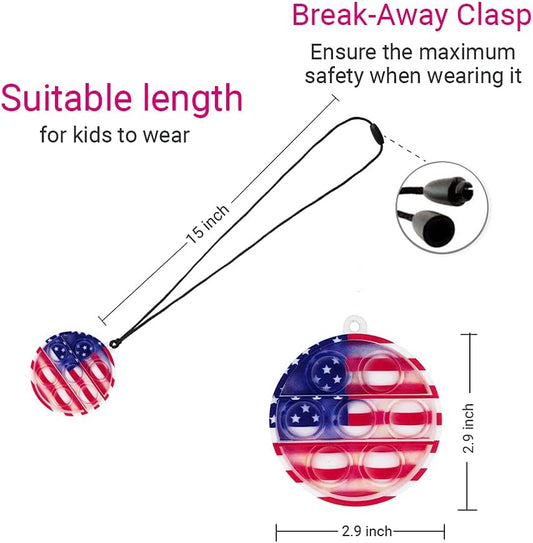 Pop It Fidget Necklace, Mini Fidget Toy Keychain, Simple Dimple Popper, Anxiety Relief Toys, Small Push Pop Bubble Sensory, Sensory Necklace Toys for Boys and Girls (American Flags)