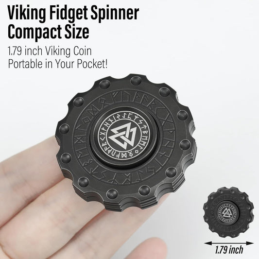 FREELOVE Metal Fidget Spinner Magnetic Slider, Viking Pirate Spinning Haptic Clicker, Heavy Stainless Steel Spin Clicky, Small Round Gear Click Gyro, Premium Silent Bearing, Adults Anxiety Cool, Black