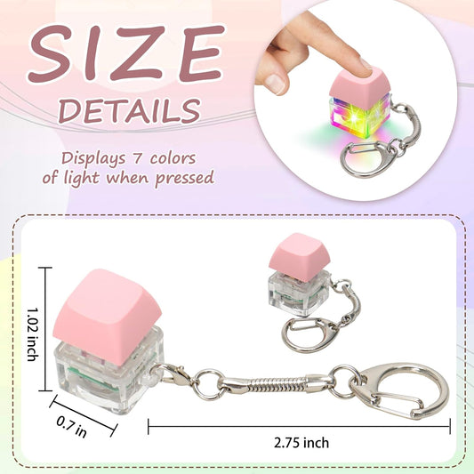 Keyboard Fidget Toys for Adults Keyboard Clicker with LED Light Keychain Fidget Sensory Fun Toys for Anxiety Decompression (Pink, 1P)