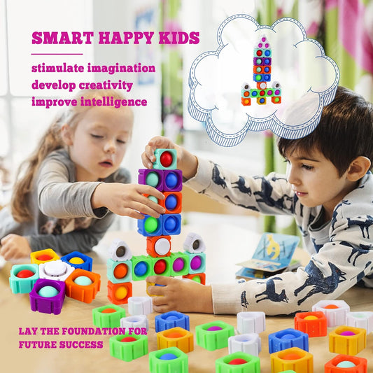 Popit Boy Toys Girl Dimple Fidgets Block Toys Pack Kids 39PCS DIY Push Poppers Fidget Blocks Sensory Toy Set Autism Children Adults Stress Relief Poppet Bubbles Toys Gift Toddler 3 12