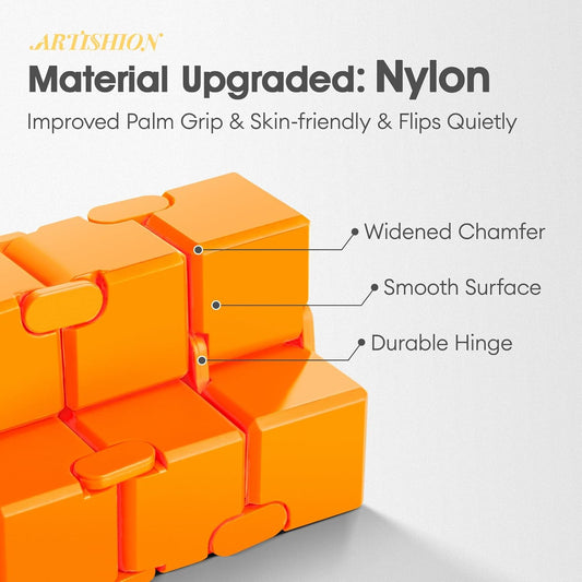 Fidget Cube, Durable Nylon Infinity Desk Toy, Skin-Friendly Handheld Gadget, Mini Stress-Relief Adult Fidget Toy for Anxiety Alleviation (Lightweight/Bright Orange)