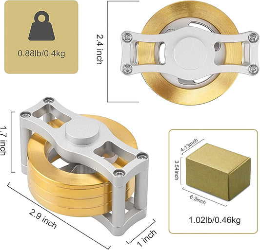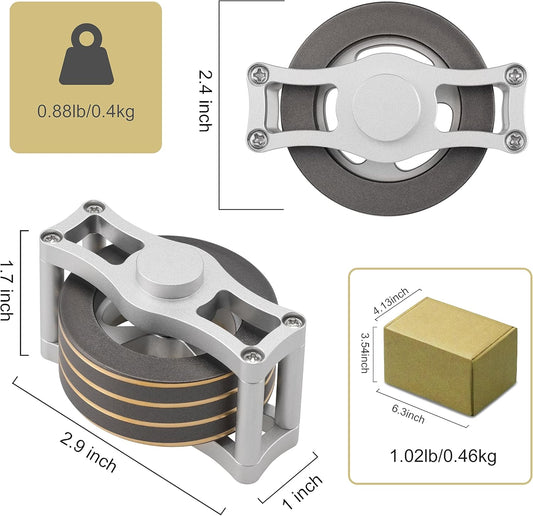 Metal Spinning Top Perpetual Motion Machine Silent Spinners Tech Gyro Desk Toys for Adult with Anxiety Exceed 30 Mins Long Lasting, Stainless Steel Desk Fidget Toy